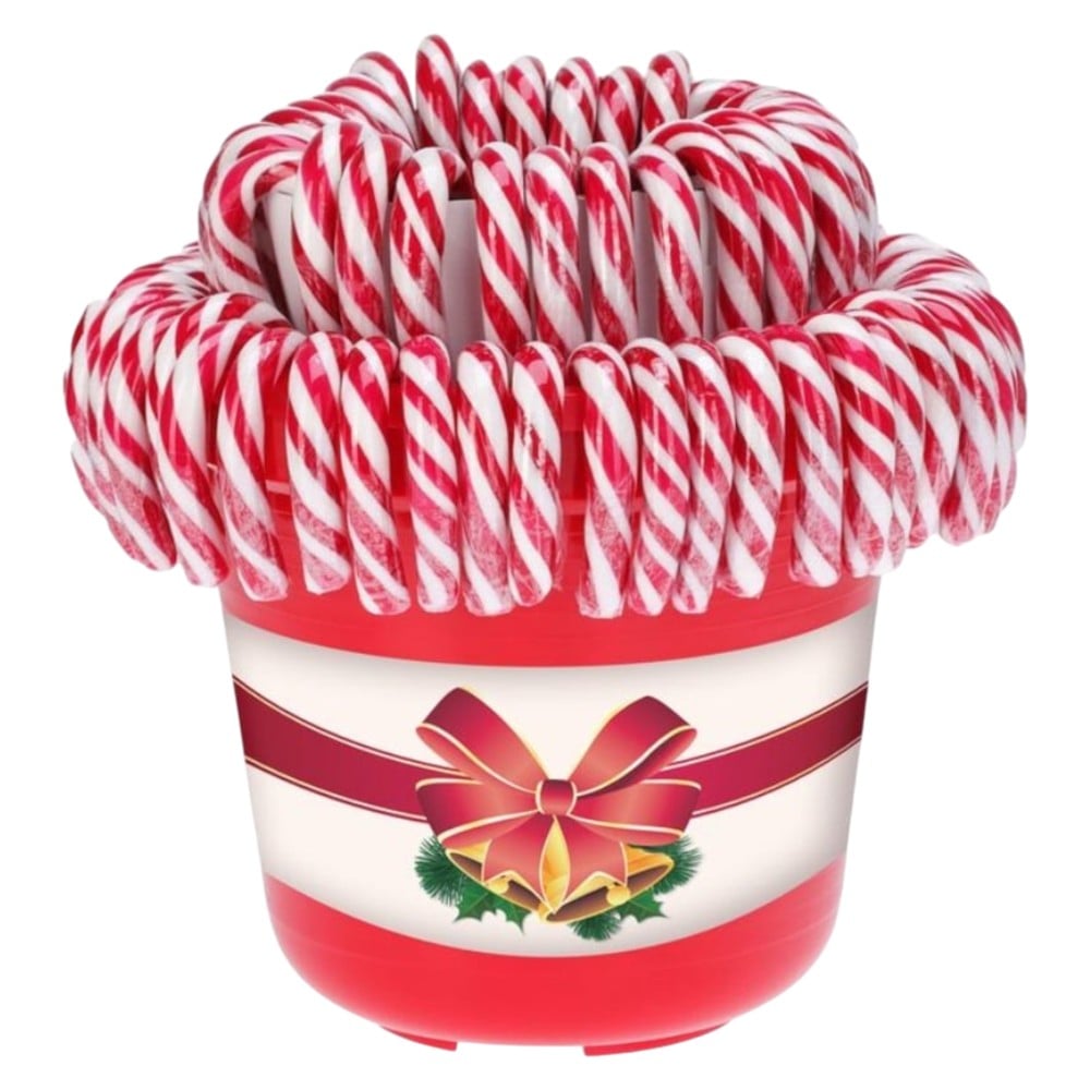 Candy cane - Hard confectionery with strawberry flavour. Ingredients: sugar, glucose syrup, acid (E330), natural flavouring, colour (E120). May contain: egg.