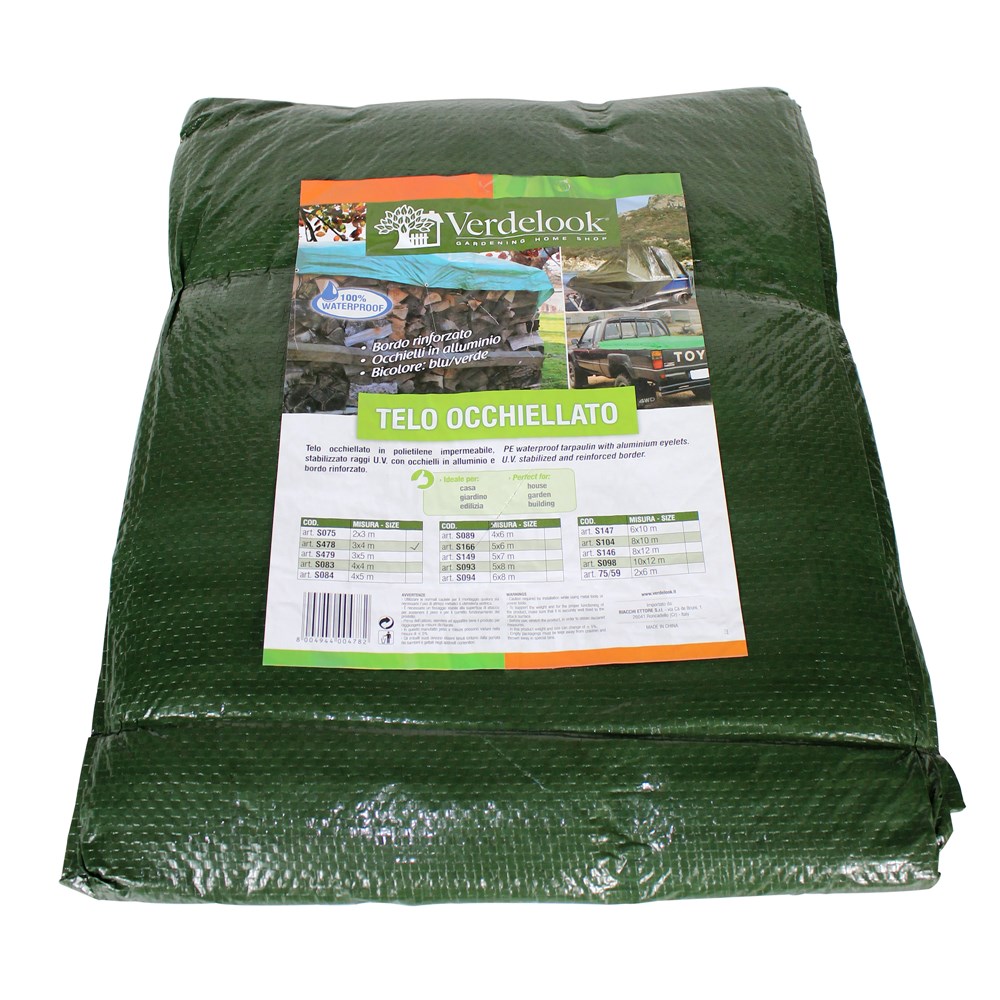 PE waterproof tarpaulin with aluminiums eyelets. UV stabilized and reinforced border. It is used to cover different kind of products ( cars, wood etc)