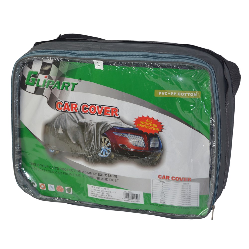 Made from tough polyethylene vinyl acetate GP-91052, this breathable, waterproof Silverline cover is designed to fit and protect extra large-sized cars. It has elasticised corners to ensure it stays in place, even in windy weather. When it isn’t in use, the cover folds up neatly to a compact size so that it can be conveniently stored in the boot of the car--or even behind the driver’s seat--with no hassles