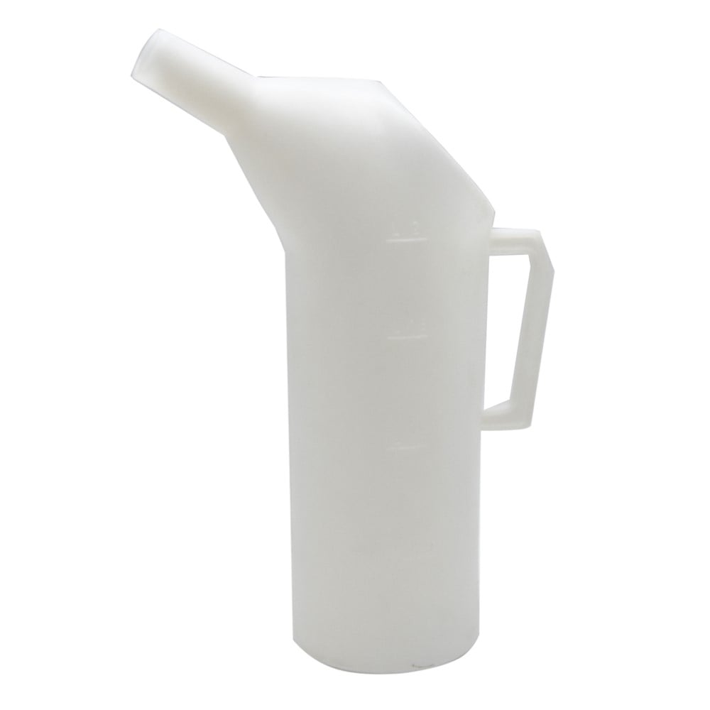 Scaling carafe made of non-toxic plastic material, 2 L for holding, transporting and holding various liquids. The carafe is equipped with a measuring scale for measuring liquids and with a handle.