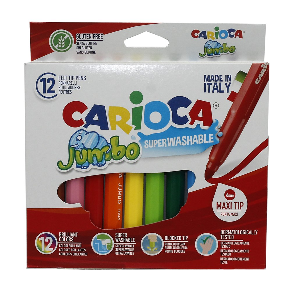 Carioca pencil maxi felt tip pens, octagonal body for easy handling. Non-toxic super washable ink. Washable from skin with water, with no soap.