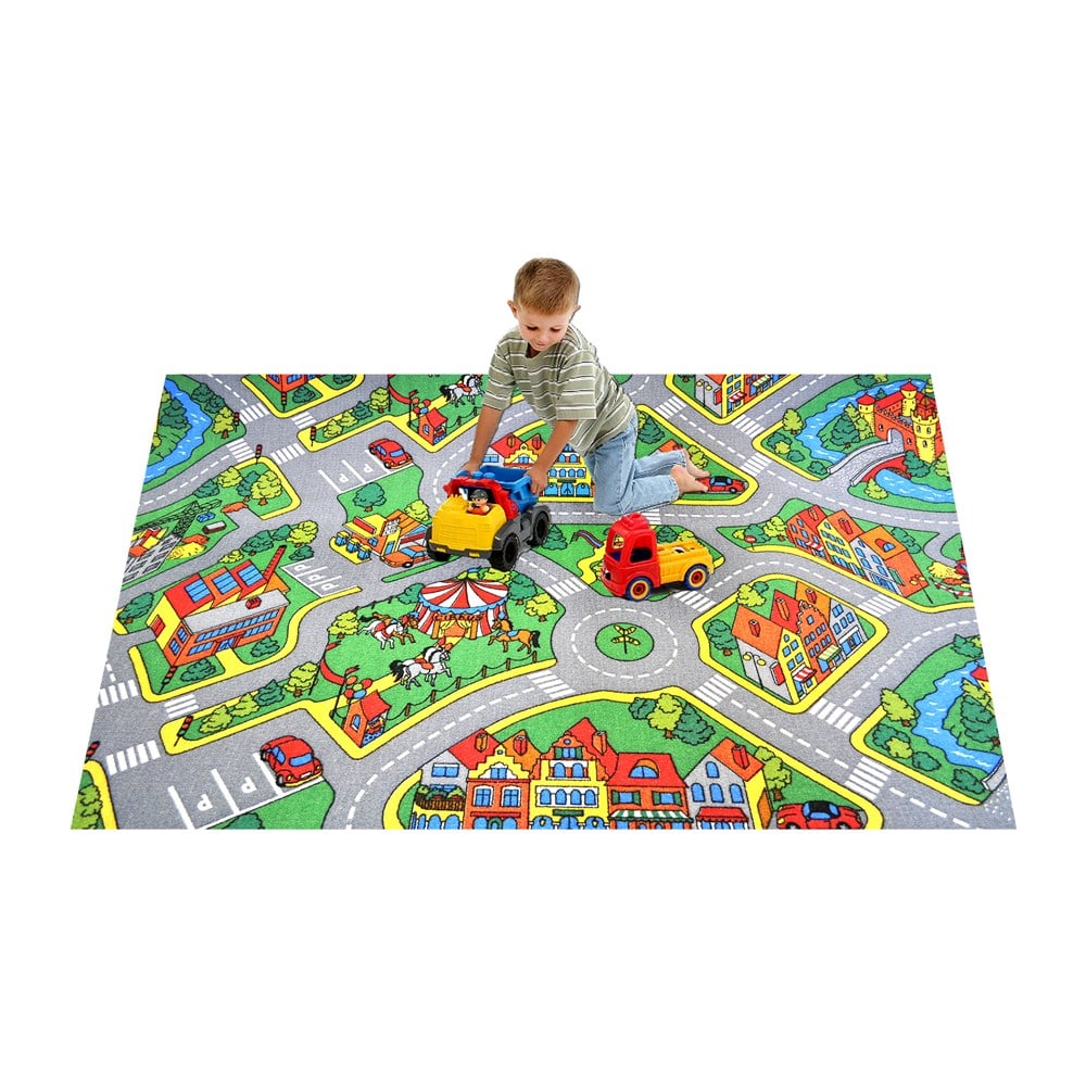 Rugs from with city thematic material soft polyester/PP is the favorite of children, they have fun and learn about signaling and traffic rules. With a fantastic combination of green and grey colors that calm and focus children tirelessly and promote the development and psycho-motor children. It is very comfortable for big spaces or to create several combinations of sizes according to your desire. Can be cleaned with vacuum and very easy. Certified quality.