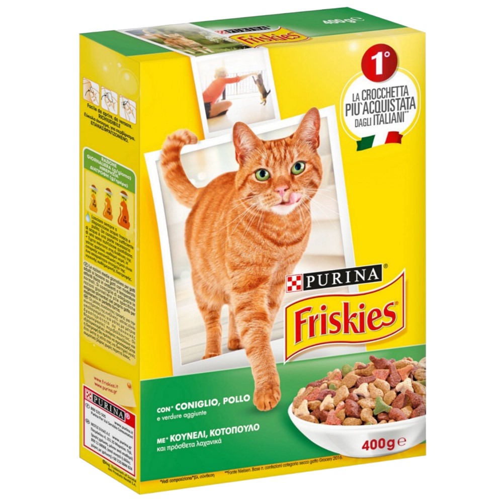 Complete food for adult cats. Ingredients: Cereals, Meat and Animal Derivatives (10.0% *), Vegetable Protein Extracts, Oils and Fats, Vegetable Derivatives, Inorganic Salts, Yeast and Vegetables (Green, orange and white croquettes: 0.13% equivalent to dried vegetables) . * Equivalent to 20% reconstructed meat and animal products, light brown and red brown croquettes: cat. At least 4% rabbit and 4% chicken. Additives: Nutritional additives: IU / kg: Year A: 12,500, Year D3: 1,000. Mg / kg: Fe (E1): 145, I (E2): 2.5, Cu (E4): 35, Mn ( E5): 16, Zn (E6): 183, Se (E8): 0.25. Taurine: 870. With dyes and antioxidants. Ingredients: Protein: 30.0%, Fat content: 10.0%, Raw ash: 7.5%, Dietary raw fiber: 2.5%.