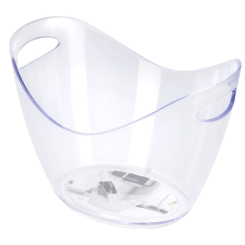 This elegant champagne cooler made of transparent polystyrene is the ideal solution for serving cold drinks in style. Measuring 27x20x19.6 cm, it offers enough space for one or more small bottles of champagne or wine, along with ice. The polystyrene material is lightweight, resistant and visually appealing, creating a glass effect without the risk of breakage. The transparency allows for an aesthetic presentation of the contents, ideal for use at parties, events or hospitality settings.
