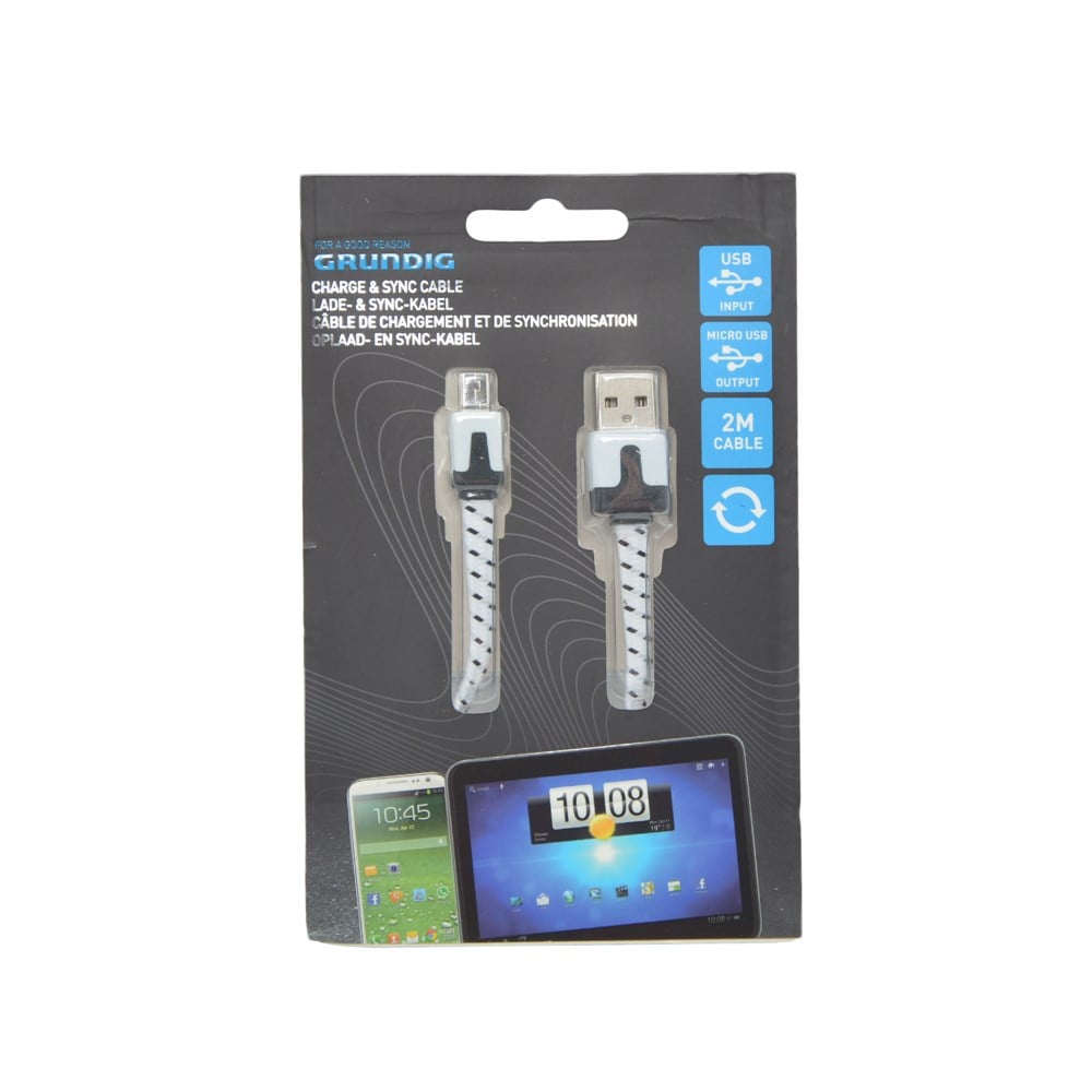 Charge & sync cable USB - Micro USB, Grundig, White/Black, 2 m, stripe nylon