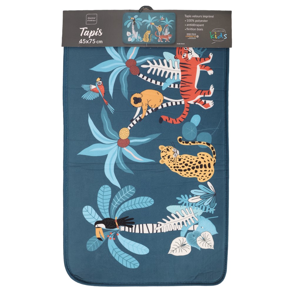 This children's rug is suitable for placement in kids' rooms. Made of polyester and in a dark green color, it provides a cheerful and warm atmosphere. Its dimensions are ideal for placing under play tables or in areas where children play and explore. This rug ensures a space of comfort and warmth for children, blending seamlessly with the decor and interior of the children's room.