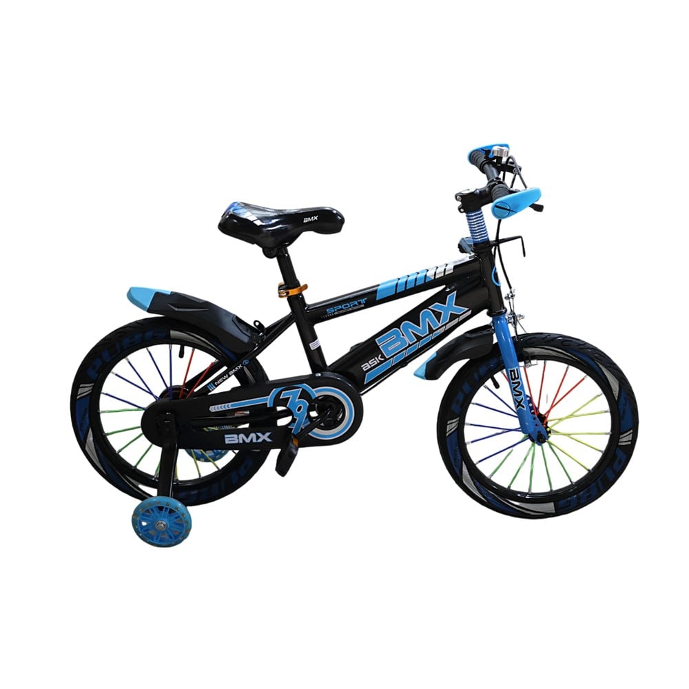 BMX model children's bicycle. It has a solid structure built from steel material, which offers longevity even after many years as if it were new. The bicycle is equipped with auxiliary wheels which are perfect for learning to pedal from the beginning. The latter are removable after the lesson. Being equipped with shock absorbers and an excellent braking system means maximum control over this bike and safety while pedaling. The transmission is gearless