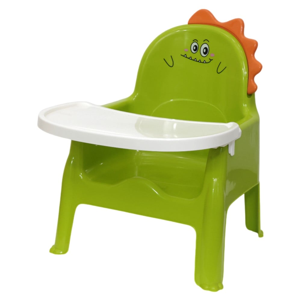The children's chair with feeding tray is ideal for feeding and playing. Made of durable plastic, it measures 50x36x25 cm and comes in a green color. Its easy-to-clean design offers convenience and safety, making it perfect for any space in the home. A practical solution for feeding and entertaining children.
