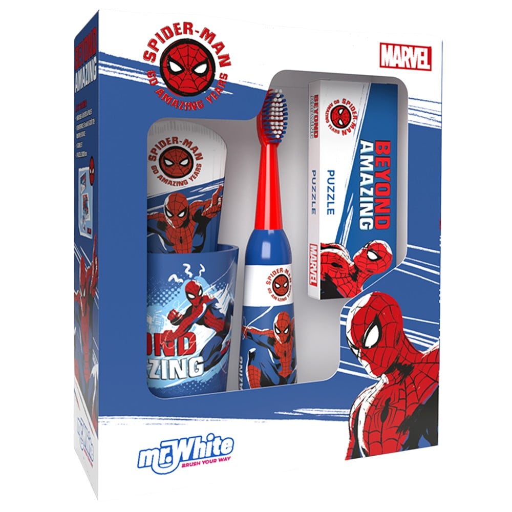 Children's set, Mr White, Spiderman, toothpaste + brush + holder + puzzle, 1 pack