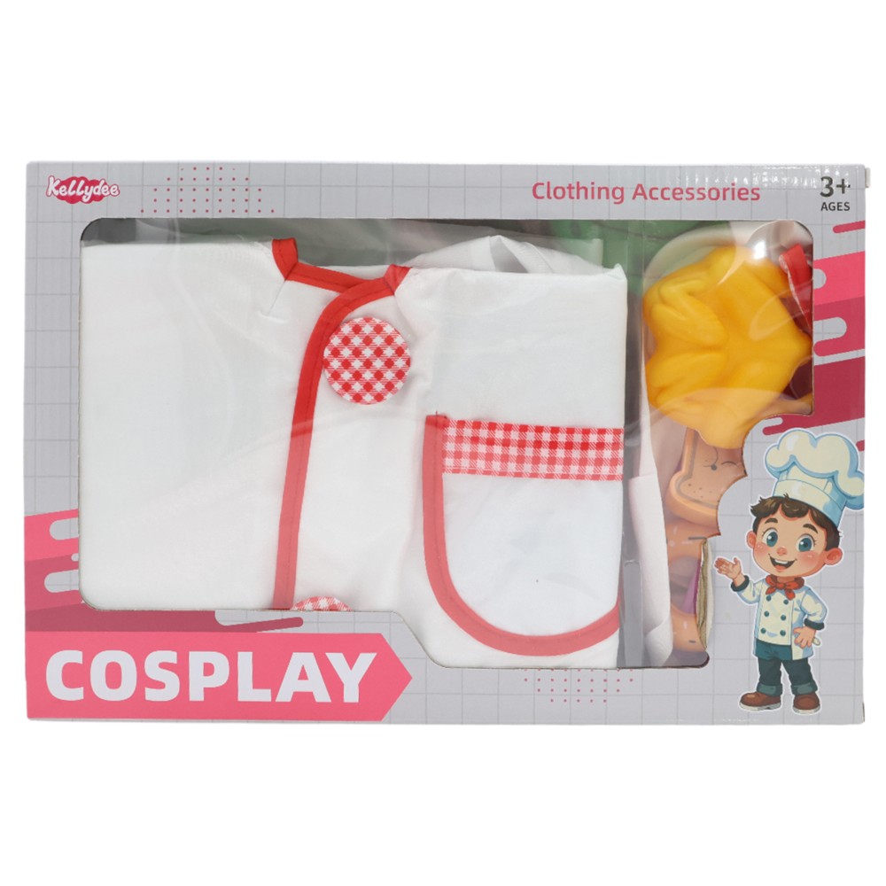Chef's uniform with accessories, a fun and educational set that allows little ones to experience the world of cooking like real chefs. This set includes a polyester chef's uniform and a selection of practical accessories, giving children the opportunity to develop their imagination and learn about cooking through play.