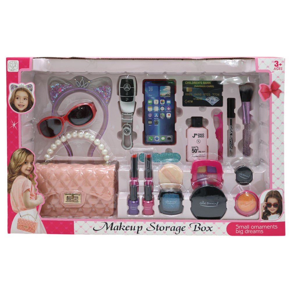 A fun and creative set for little girls who want to play in style. This kids' makeup accessory set comes in a pretty pink color and helps them express their imagination, develop role play and feel like real princesses. Safe and suitable for fun games at home or with friends.