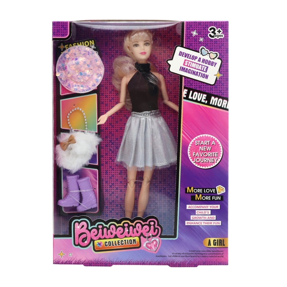 Fashion Doll, equipped with accessories that make the game even more attractive. With dimensions of 22.5x5x32 cm, this doll is perfect for small hands and easy to manipulate during play. The doll encourages imagination and creative play, allowing children to create unique stories, experiment with different combinations of accessories and develop social and artistic skills.