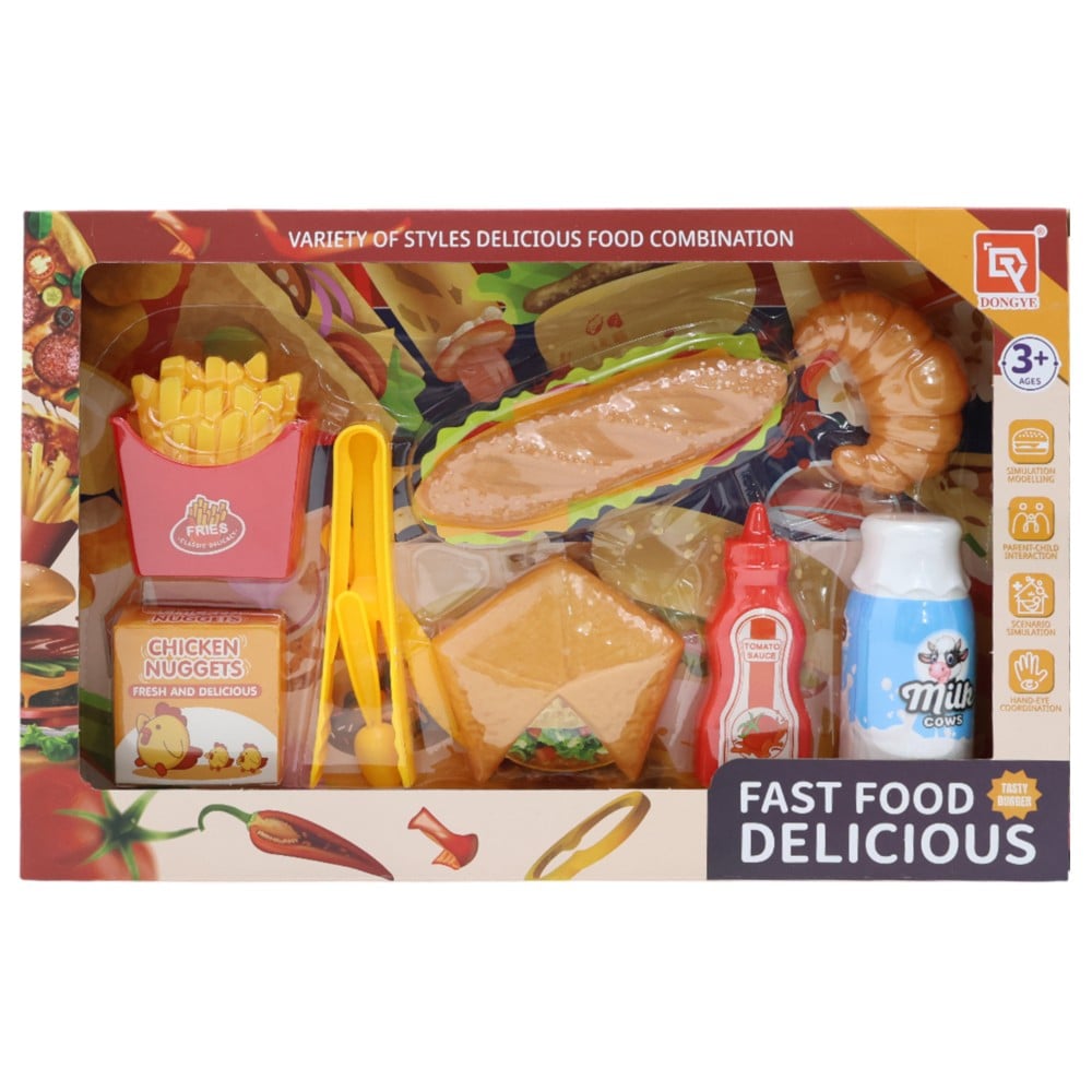 This fun Fast Food Delicious toy is designed to stimulate children's imagination and creative play. The set includes fast food elements made in detail from quality plastic materials that are safe for children. Ideal for role-playing, it helps develop social and motor skills.
