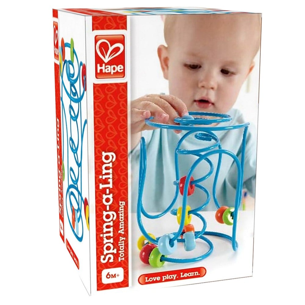 Over, under, around and through. Wooden beads, rings and winding paths create endless ways to play.