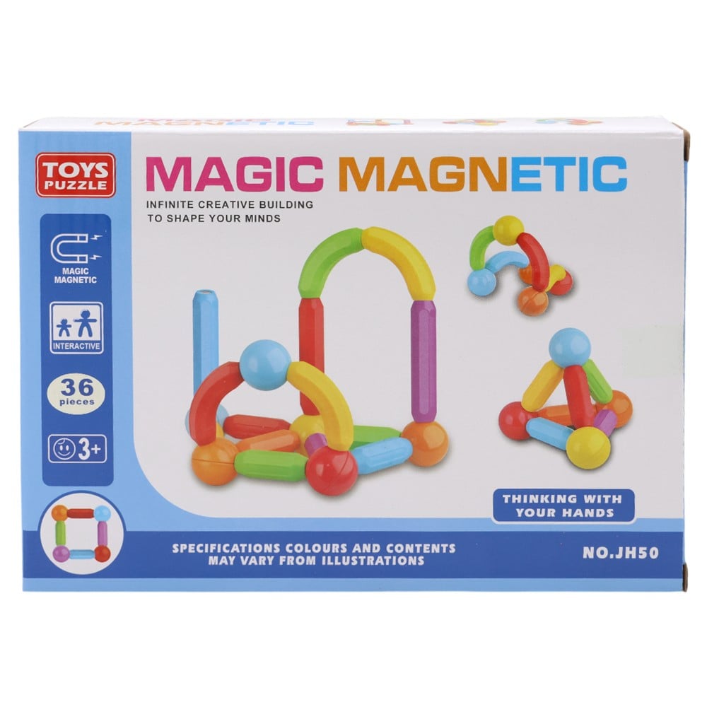Magnetic Building Set, with a total of 36 pieces, perfect for creative building and educational fun. This colorful set allows children to create different shapes, structures and patterns using the power of magnets, bringing endless games with diverse combinations.