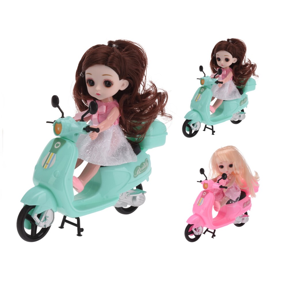 Toy set for girls doll with scooter. Go on an adventure with the doll and her scooter, made of plastic material. This set helps in developing imagination, developing senses and developing learning skills in children. The component material and paint do not contain toxic or harmful content for children and the product is certified for safety in use. This product is suitable for use by children over 3 years of age.