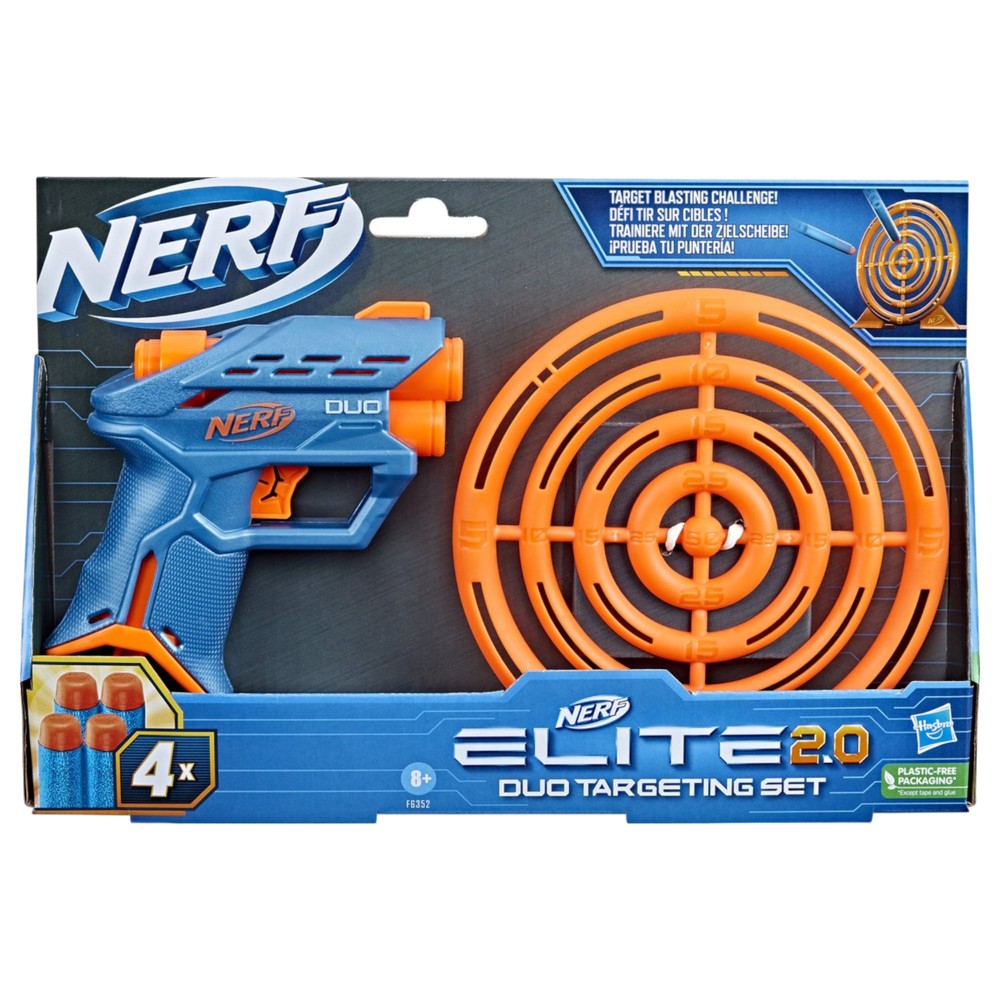 Develop your accuracy skills with this comprehensive set. The two-bullet mini-blaster lets you fire one bullet at a time with a pump mechanism. The freestanding target allows for practice in any environment, while the 4 Elite bullets ensure instant game play.