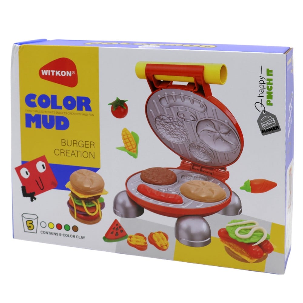 Playdough and hamburger maker, a creative set that combines play with playdough and the fun of preparing food. This set allows children to create hamburgers, sandwiches and other personalized shapes, stimulating imagination and motor skills.