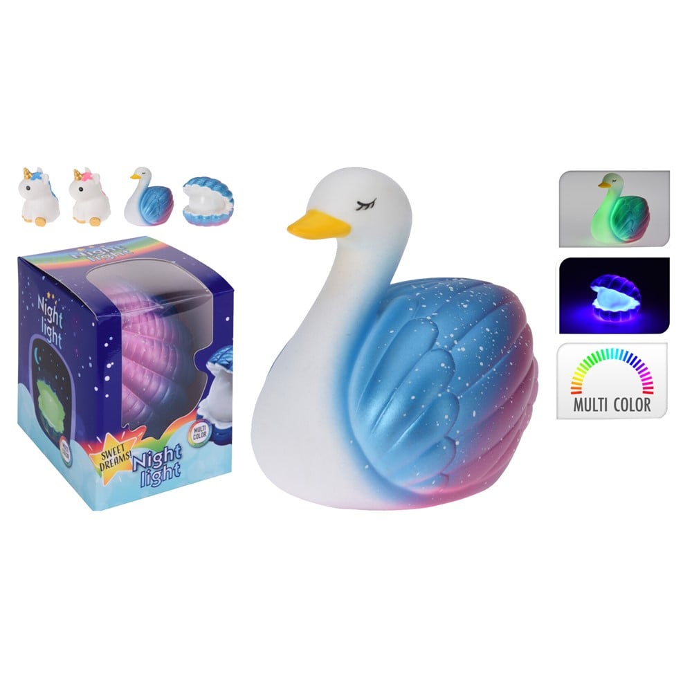 This lamp in the shape of a shell, unicorn or swan ensures that you don't have to lie in complete darkness. The colors of the night light can be changed to different colors, making the children's room take on a different look. The night light runs on 3x LR44 batteries, which are included.