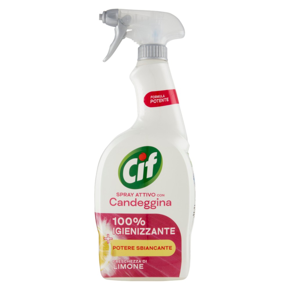 Cif Active Spray with bleach is the perfect combination between a daily cleaning action and 100% deep hygiene. Its powerful lemon-scented formula contains bleach, ideal for disinfecting your home's surfaces and as a pre-treatment for white fabrics. Apply to the stain before washing, it helps remove stains such as wine, coffee, fruit juice and lipstick.