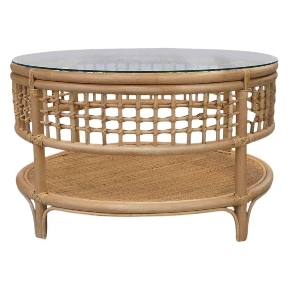 You're reviewing:Circular coffee table, Oscar, rattan, tempered glass, natural color, D80xH47 cm