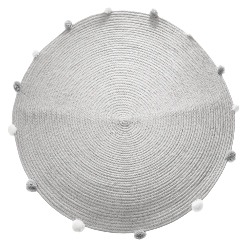Pompons circular carpet for children's room, in gray and 90 cm in diameter, is made of soft and durable materials. This carpet provides a warm and comfortable surface for games and activities, creating a pleasant and safe space in the children's room.