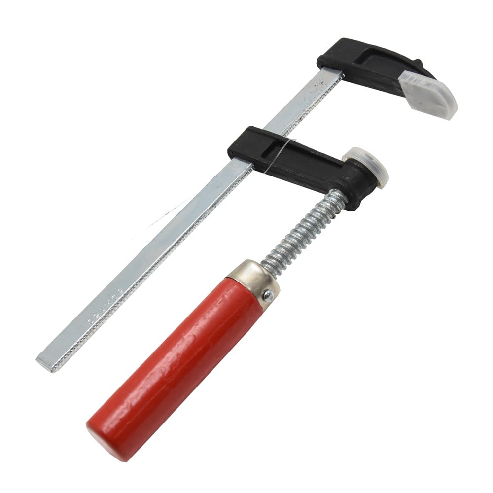 Ideal for capturing and fixing wooden structures during their assembly, gluing or nailing. The steel structure ensures durability. The tip of the clamp is protected by a plastic surface, which eliminates damage to the wood.