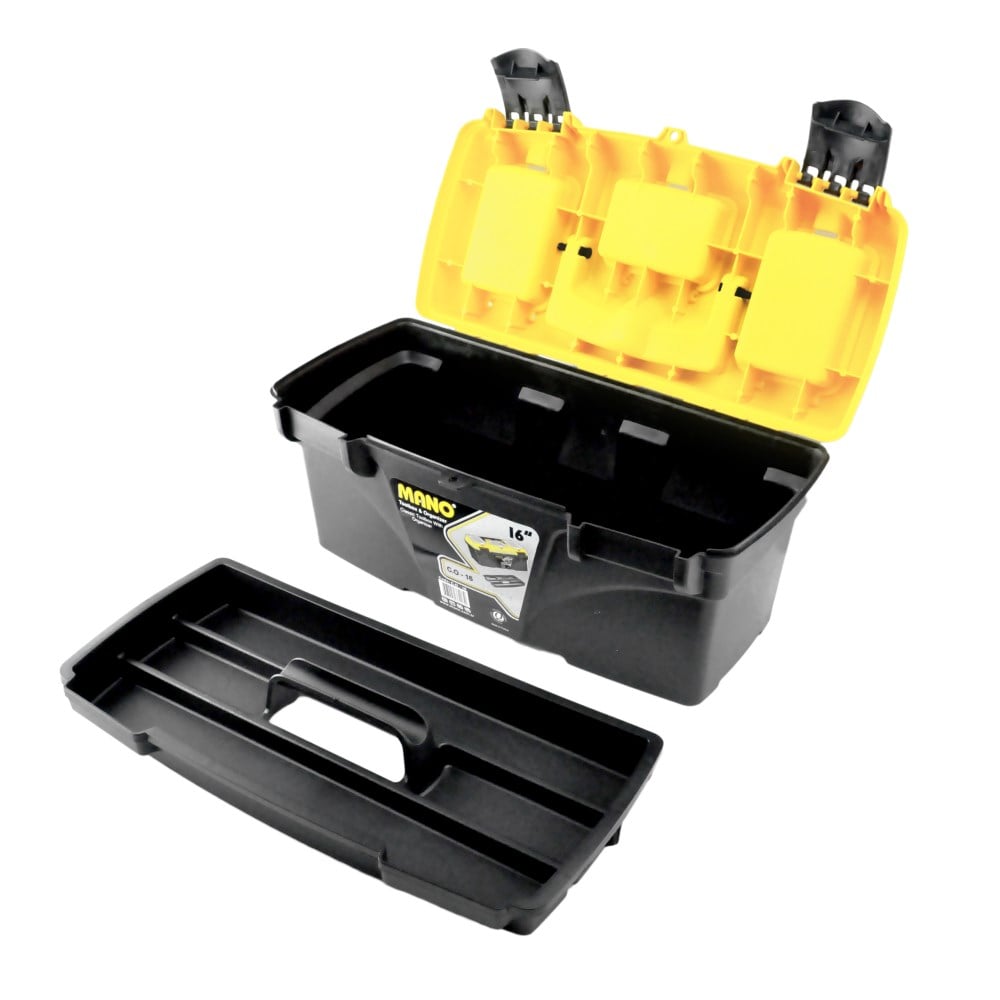 Tool box is designed with the professional in mind; a heavy duty constructed body adds strength and durability. A removable tool tray is a perfect way to organize your tools in your home or at the jobsite.Removable tool tray.Durable heavy construction