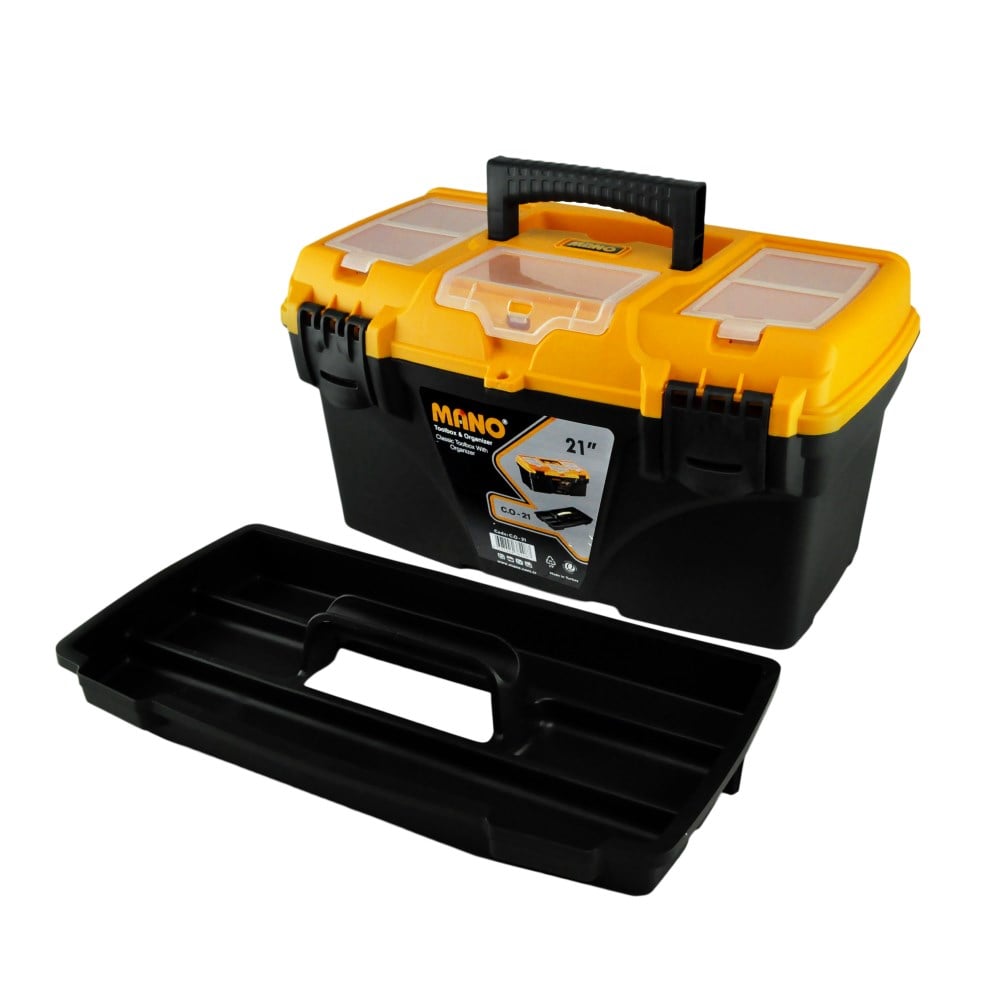 Tool box is designed with the professional in mind; a heavy duty constructed body adds strength and durability. A removable tool tray is a perfect way to organize your tools in your home or at the jobsite.Removable tool tray.Durable heavy construction