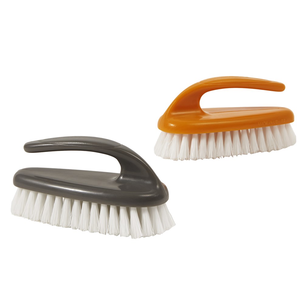 Cleaning brush, "Perfetto", with handle, plastic, orange-grey