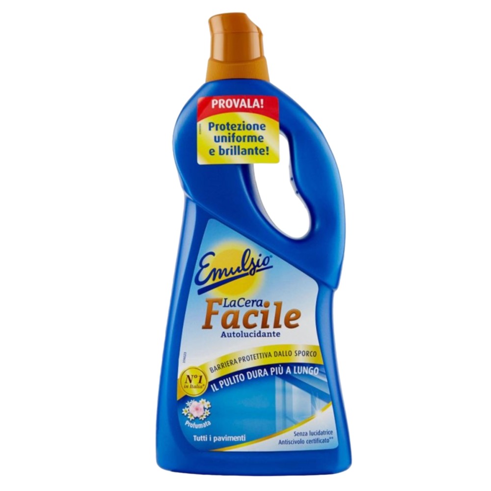 Cera Facile Pavimenti, used regularly, spreads a protective layer on the treated surface, able to protect your floor from signs of aging (for example: scratches, stains, scratches) while maintaining its natural shine and facilitating daily cleaning. The new formula is non-slip: tested to reduce the risk of slipping. Easy and quick to apply, does not require the use of polish.