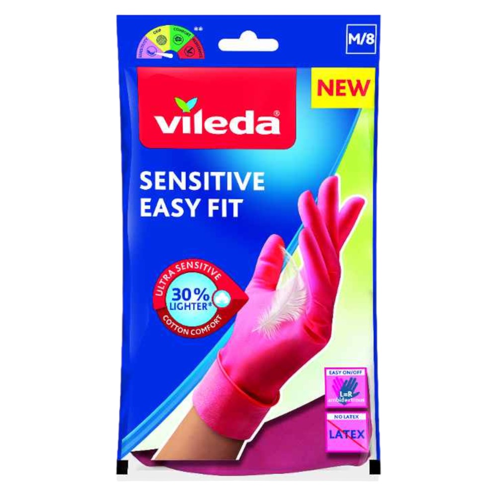 Cleaning gloves, vileda, M/8, latex, easy fit, red, 1 pair
