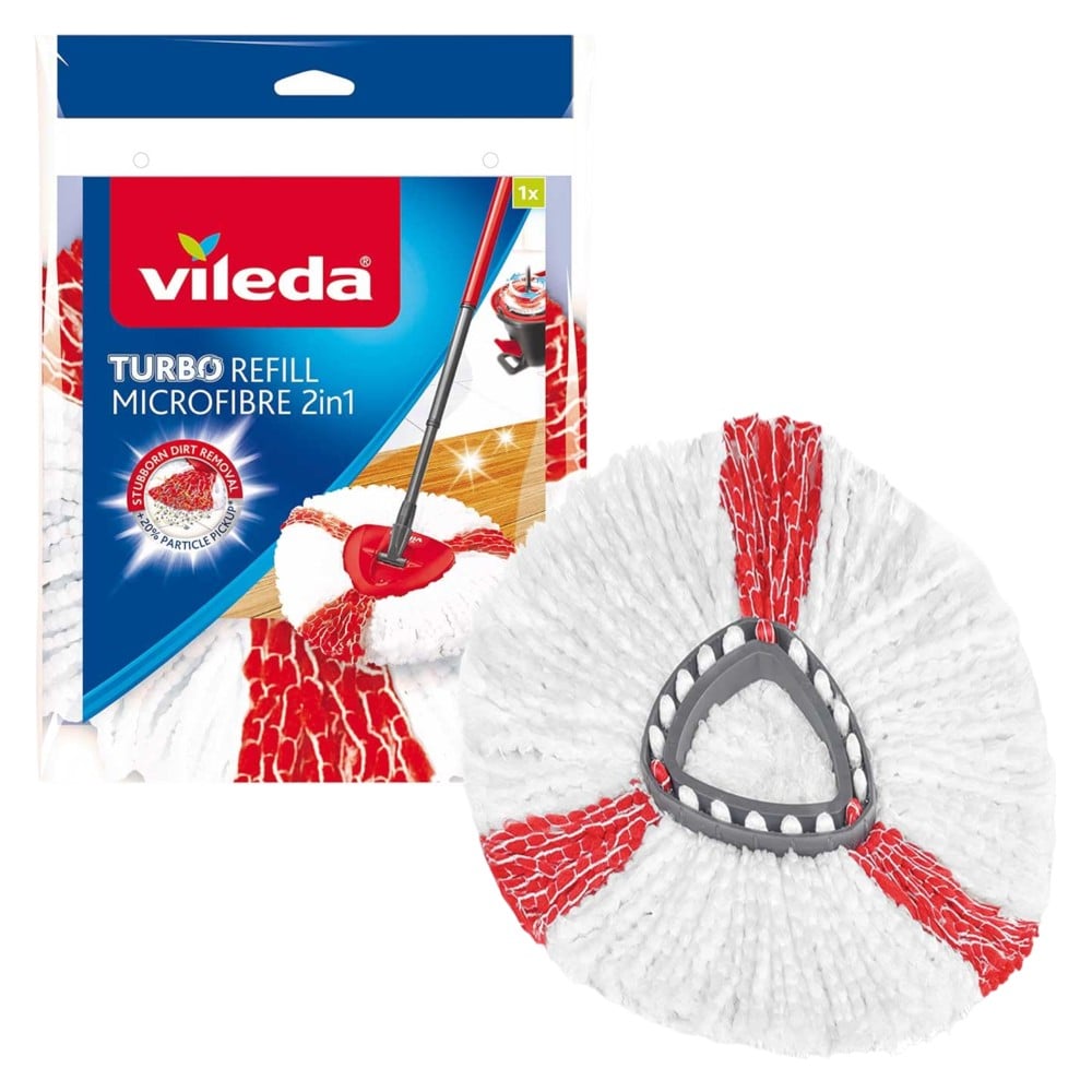 Cleaning mop which is used as a replacement for the Vileda bucket. Its material is absorbent. The Vileda rotary stick contains two types of fibers, making it even more effective in cleaning surfaces in your home. The red threads remove particles and dust more effectively, while the white threads are responsible for the efficient removal of dirt and dried stains. It can be washed at 60°C.