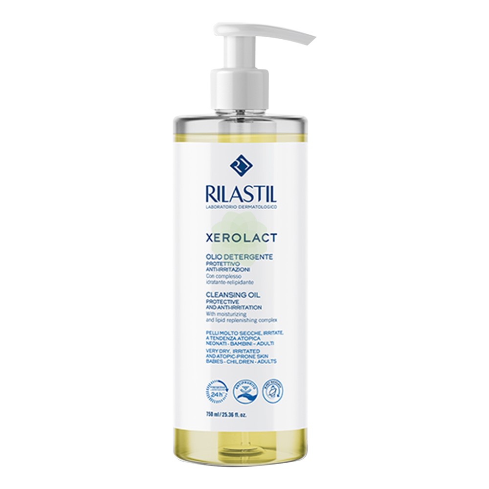 Cleansing oil, for the treatment of atopic skin in infants, children and adults, with a dermatologically tested formula, enriched with moisturizing-soothing complex and almond essential oil, which deeply hydrates pores, regenerates and soothes damaged skin cells, restores the function of the skin's protective barrier and at the same time performs an effective action against irritation. How to use: Apply to damp skin of face and body and massage gently as a normal cleanser. If used in the bathroom, dissolve in the bath water and then take a bath. This product is suitable for the treatment of very dry, irritated or atopic skin, which easily develops redness or itching.