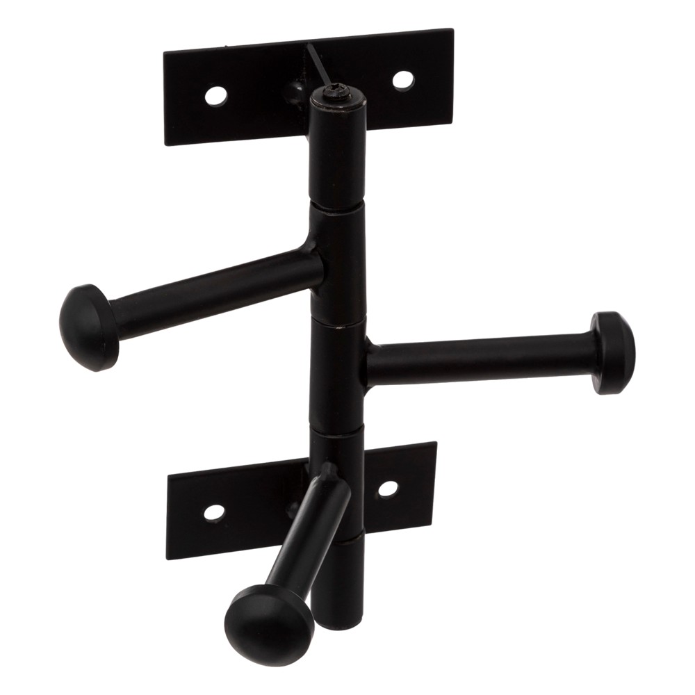 This hanger is the right solution for you. It fits equally well in the hallway for outerwear or in the bathroom for towels. The hanger can be easily mounted on the wall and is equipped with 3 rods/hooks that can be rotated in the desired direction. The product is made of black metal and has a stylish and elegant design.