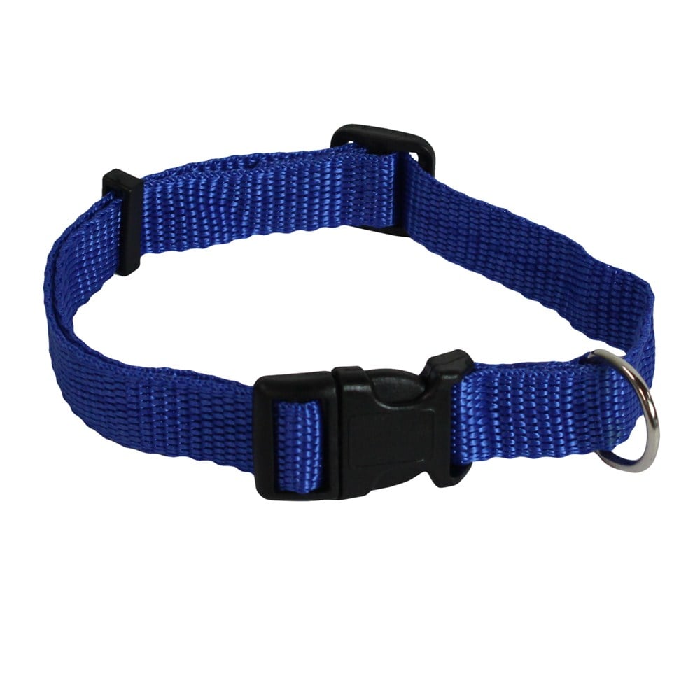 Nylon collar for dogs, adjustable length from 30cm to 46cm. Choose an adjustable collar for a custom fit on your dog. Resistant single ply nylon collars feature tough plastic buckles and built-in adjustment slides, heavy duty stitching, and metal d-rings