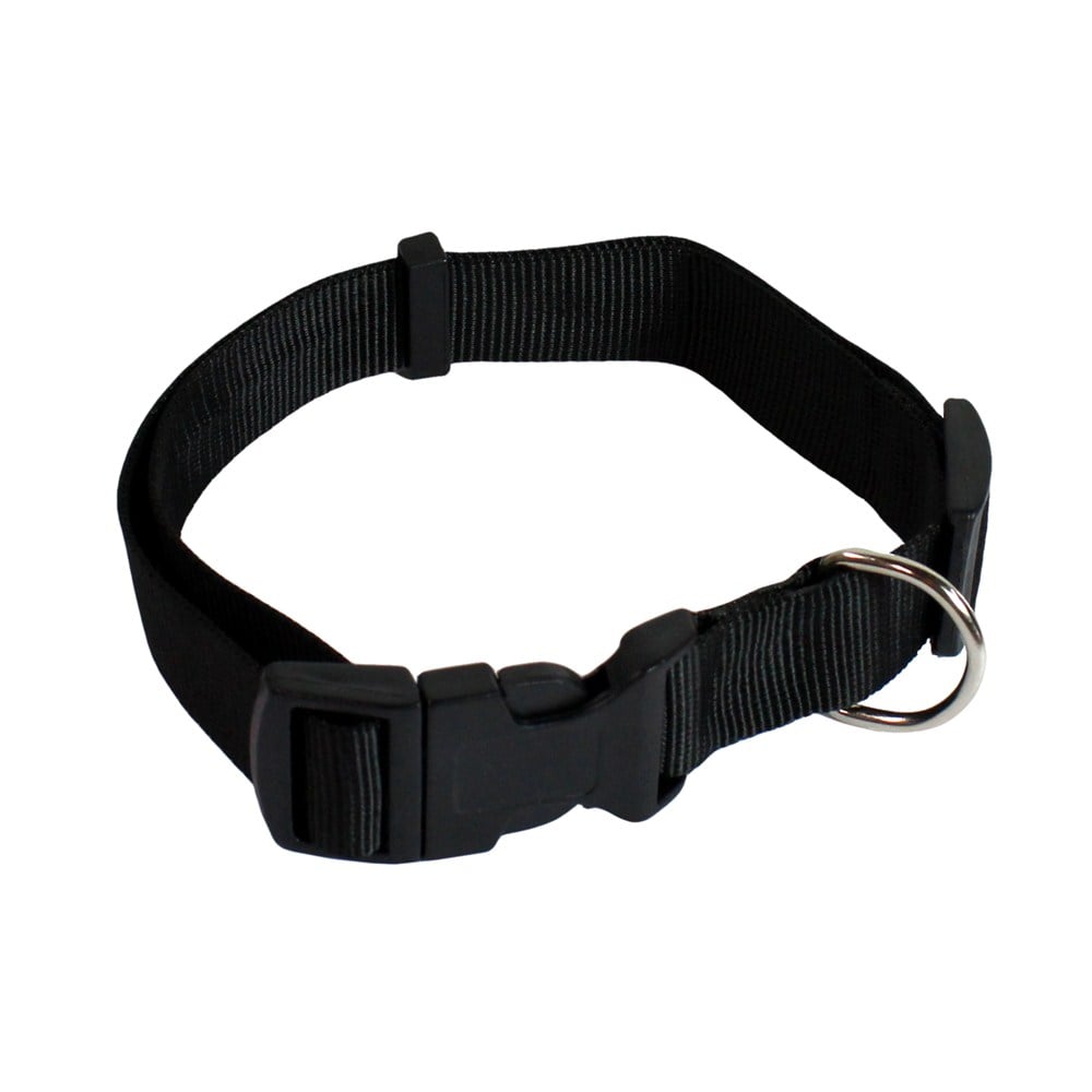 Nylon collar for dogs, adjustable length from 38 cm to 62cm. Choose an adjustable collar for a custom fit on your dog. Resistant single ply nylon collars feature tough plastic buckles and built-in adjustment slides, heavy duty stitching, and metal D-rings