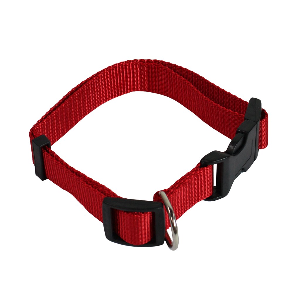 Nylon collar for dogs, adjustable length from 38 cm to 62cm. Choose an adjustable collar for a custom fit on your dog. Resistant single ply nylon collars feature tough plastic buckles and built-in adjustment slides, heavy duty stitching, and metal d-rings