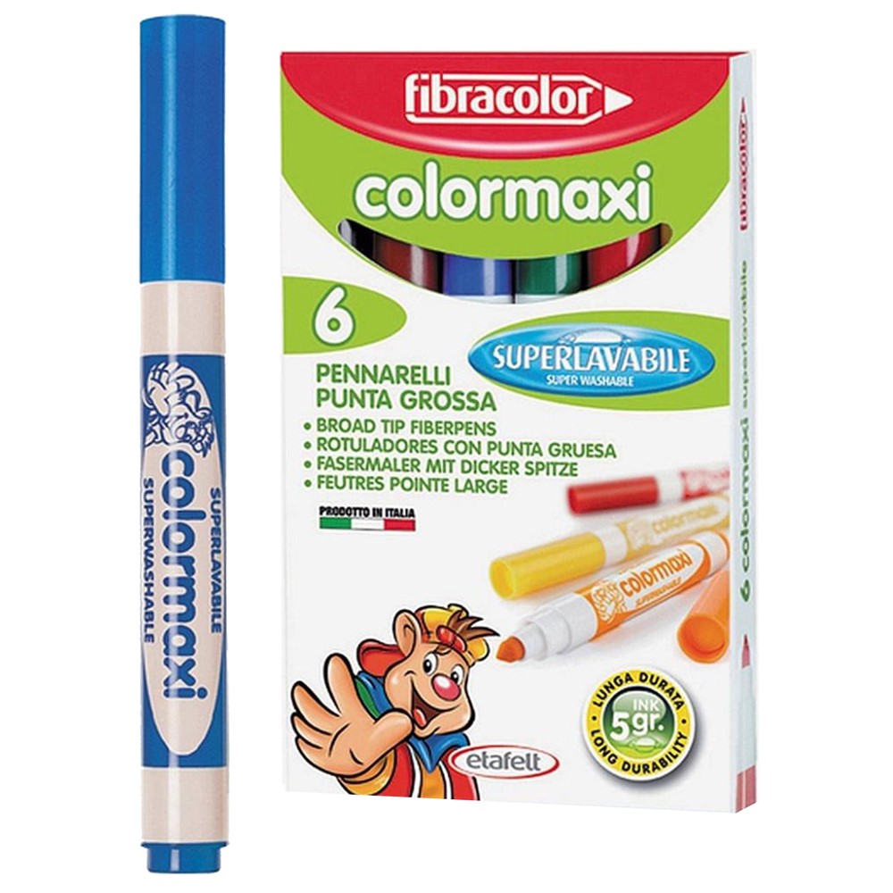 Colored felt-tip pens for kids, made of durable plastic material, with a reinforced felt-tip, that resists the pressure exerted by the children's hand and has a diameter of 2-5 mm. They contain dermatologically tested water-based ink, which can be easily cleaned from hands and clothes. The pens are used in schools and kindergartens, to draw or color and help develop imagination in children. This product is suitable for use by children over 2 years old.