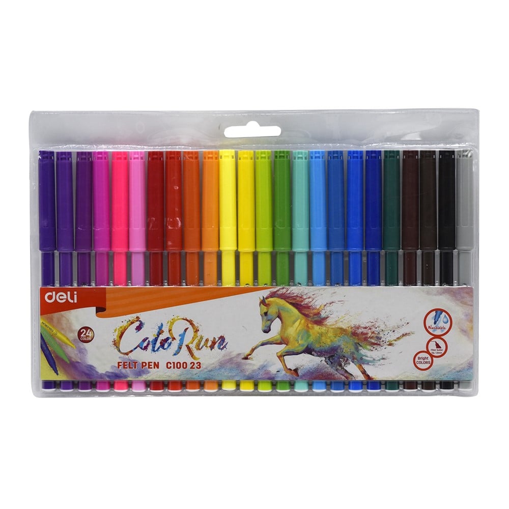 Colored markers for children, ColoRun, Deli, plastic and fiber, 26.2x15x1.2 cm, miscellaneous, 24 pieces
