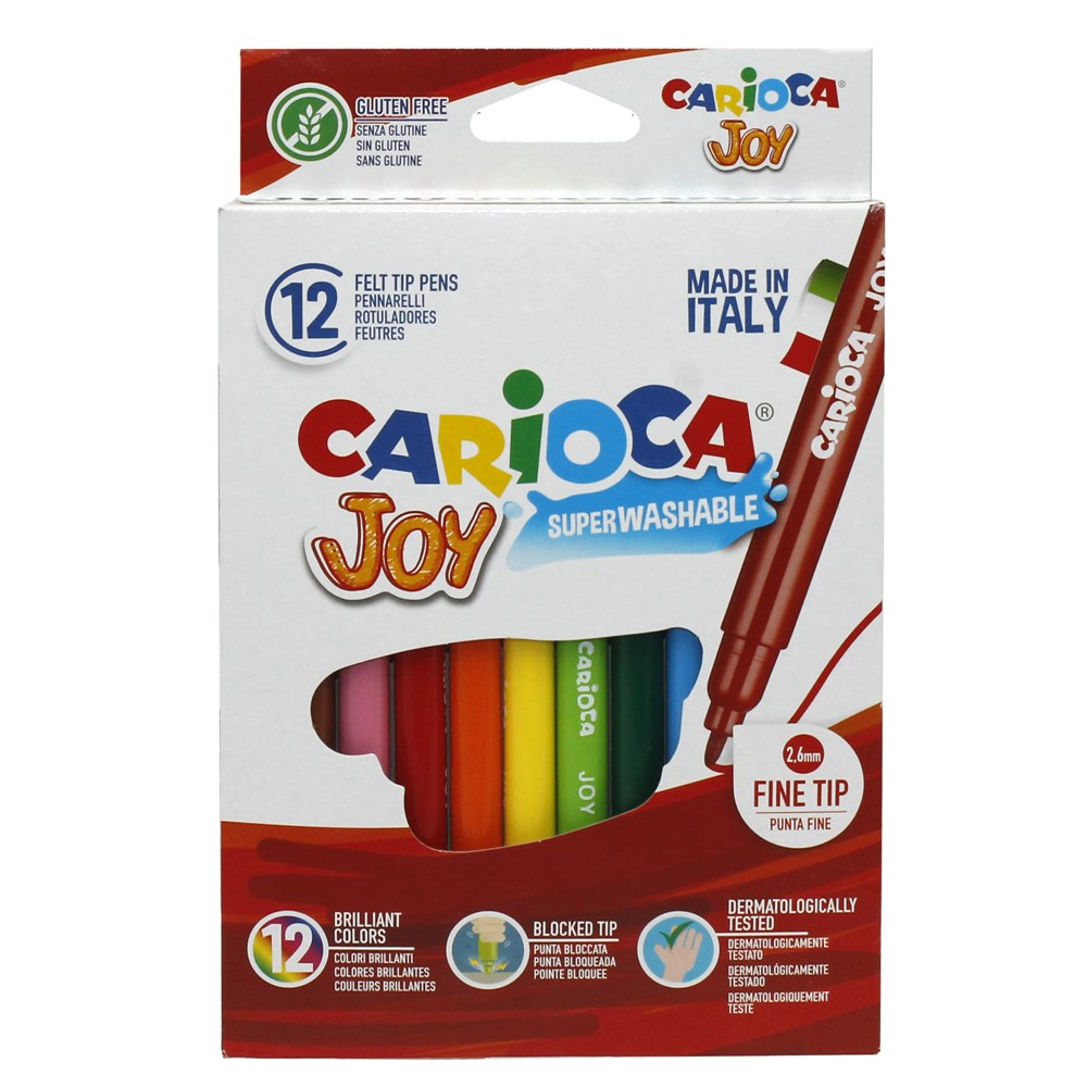 Colored felt-tip pens for kids, made of durable plastic material, with a cap that allows ventilation, with a reinforced tip, that resists the pressure exerted by the children's hand and with a line width of 2.6 mm. They contain dermatologically tested food dye, gluten free, which can be easily cleaned from hands and clothes, with soap and water. The pens are used in schools and kindergartens, to draw or color and help develop imagination and creativity in children. This product is suitable for use by children over 2 years old.