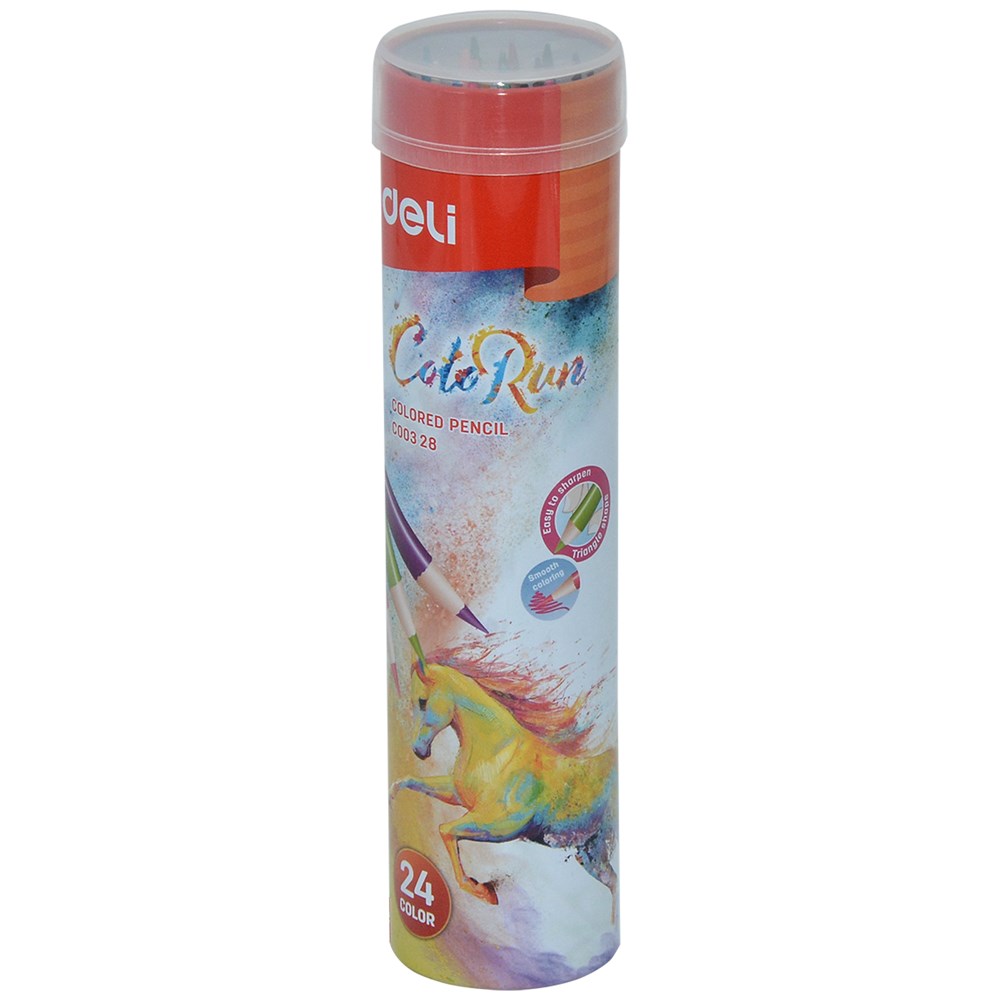 Colored pencils for children, which are made of durable synthetic resin material, without toxic content, in 24 different colors, with reinforced tip, that resists the pressure exerted by children's hands during coloring, and with triangular-shaped structure, that gives them ergonomic properties and makes them easy to use. The pencils are used for coloring, drawing or other artistic works, in schools and kindergartens. This product is suitable for use by children over 3 years old.
