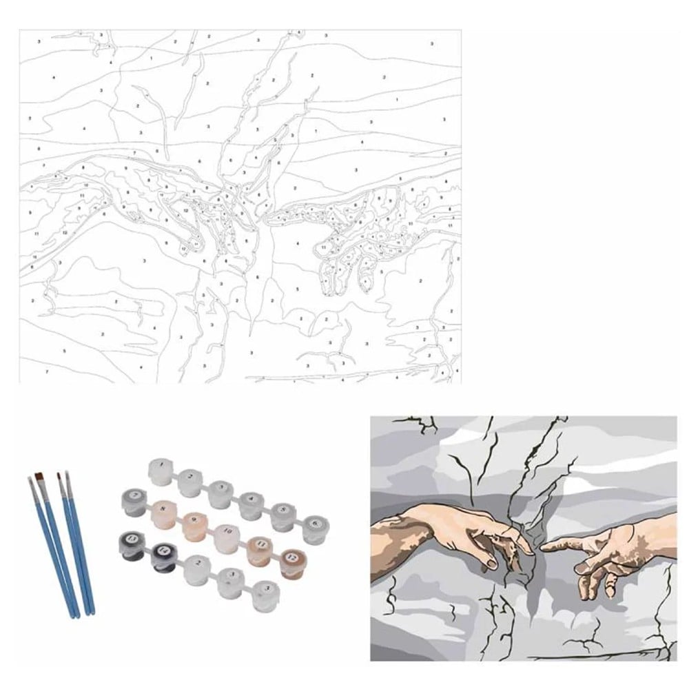 This coloring set inspired by the famous work of "The Creation of Adam" offers the opportunity to create a copy of the famous work, using the coloring by numbers technique. With a size of 40x50 cm, this set is ideal for those who want to explore this unique style and color one of the most famous paintings in the world. The set contains everything you need to create a perfect copy: high-quality paint, a suitable frame and a detailed guide that guides every step of the coloring process. This set is a great opportunity for young artists and art enthusiasts to create a wonderful work of art that will attract attention.
