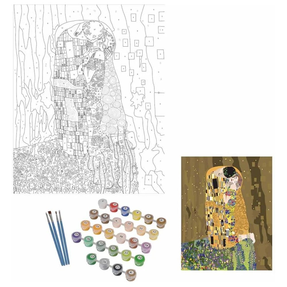 This coloring set inspired by the famous work of "The Kiss" offers the opportunity to create a copy of the famous work, using the coloring by numbers technique. With a size of 40x50 cm, this set is ideal for those who want to explore this unique style and color one of the most famous paintings in the world. The set contains everything you need to create a perfect copy: high-quality paint, a suitable frame and a detailed guide that guides every step of the coloring process. This set is a great opportunity for young artists and art enthusiasts to create a wonderful work of art that will attract attention.