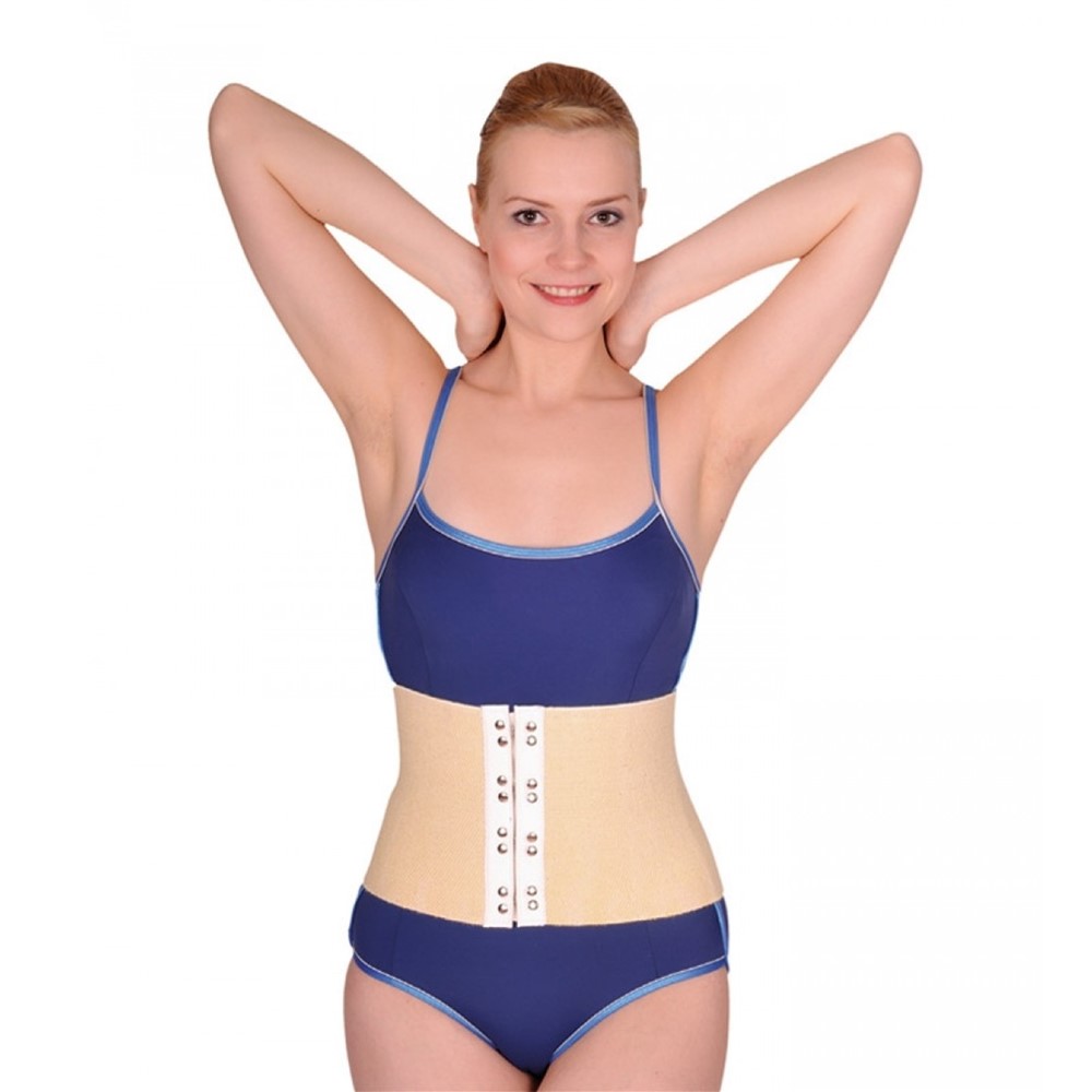 Compression belt wide with hooks, 101/65 model, which is used in case of muscle weakness of the abdominal wall.