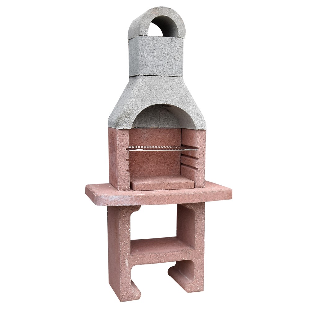 Concrete barbecue with stone decor, in white and red color, with a weight of 260 kg and dimensions of 90x58x189 cm. It can be used for roasting meat, vegetables, fish, etc. It also contains a metallic cooking grid with handle, made of stainless steel material, with dimensions of 45x33 cm, and it is equipped with three different height levels for placing the grill. This product is suitable for outdoor use and is resistant to atmospheric conditions. Assembly required.