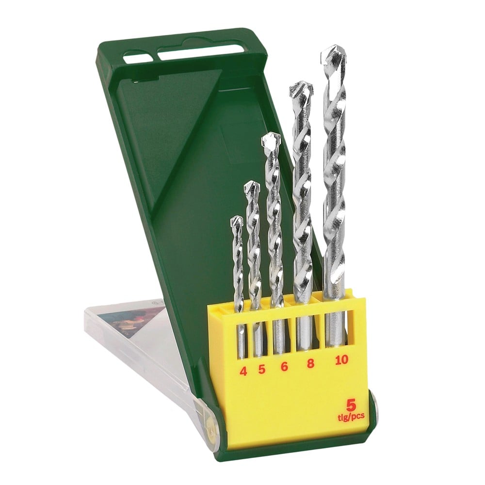 5 Piece Masonry Mini X-Line Drill Set.. Longer life in concrete and faster drill speed in comparison to the competition. It is extremely bend-resistant. Impact-resistant heavy-duty drill bit, manufactured to ISO 5468, for impact drills up to 1000 Watt and rotary hammer with chuck tool holder. Suitable for fixing holes and drilling in concrete, artificial stone, masonry and bricks. Kit Consist: 4 mm, 5 mm, 6 mm, 8 mm, 10 mm.