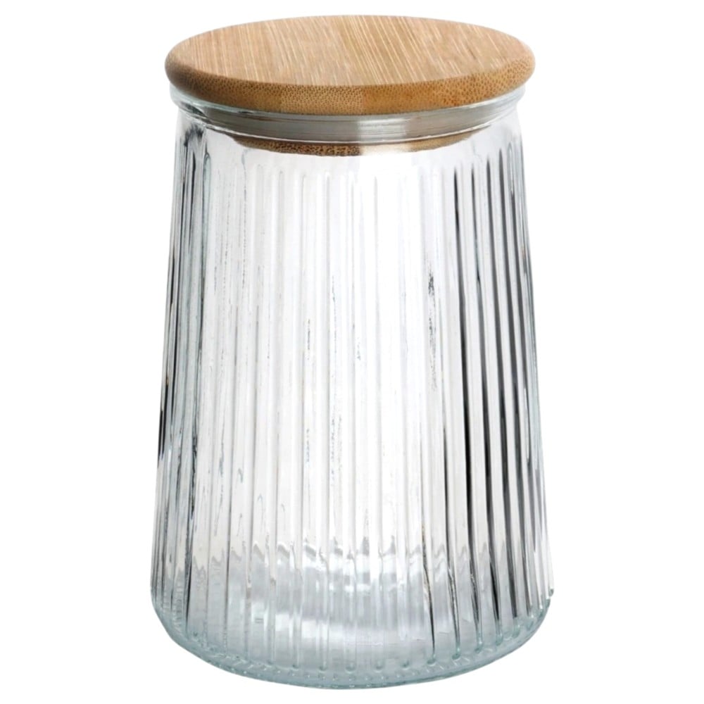 The 1000 ml jar is made of clear and transparent glass, combined with a natural bamboo lid. With dimensions Dia. 11 x H 16 cm, it is ideal for storing dry foods such as tea, coffee or various spices. Its minimalist design offers an elegant and attractive appearance, while the ecological and recyclable material makes it a perfect choice for your kitchen.