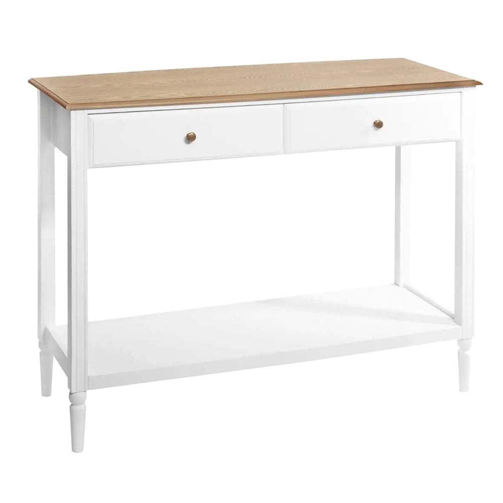 You're reviewing:Console table, 2 drawers, Solen, wooden frame (white), wooden tabletop, oak, 110.5x40xH85.5 cm