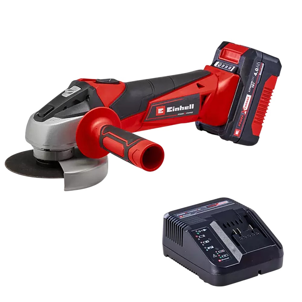 With its low weight, the Einhell cordless angle grinder TC-AG 18/115 Li (1x4.0Ah) is a light and therefore handy angle grinder with a cutting depth of maximum 28 mm and a disc diameter of 115 mm. Whether powerful cutting, grinding or polishing, with an idle speed of 8,500 revolutions per minute, the angle grinder is a useful helper in the home workshop and hobby cellar. The tool belongs to the Power X-Change family: The batteries of the powerful lithium-ion system series can be utilised in all devices of the series. Soft start and restart protection always ensure increased application safety, while overload protection in turn ensures the durability. The gearbox housing is made of robust and, at the same time, lightweight aluminium, the design is constructed as slim. Equipped with an ergonomic soft grip, the additional handle is flexible and can be assembled and fixed in 3 positions. For optimal results, a 2.5 Ah battery or higher is recommended. A 4.0 Ah Power X-Change battery and a charging device are included in scope of delivery. A cutting disc is not included in the scope of delivery, it is available separately.